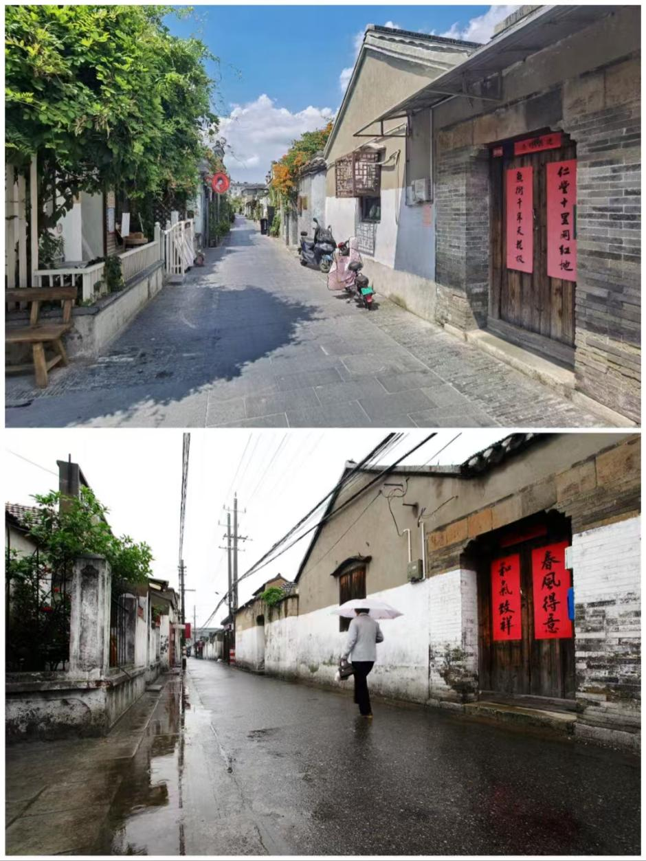 現(xiàn)在的仁豐里(上)和2017年以前的仁豐里(下)對比(央廣網(wǎng)發(fā) 揚州市廣陵區(qū)汶河街道供圖)