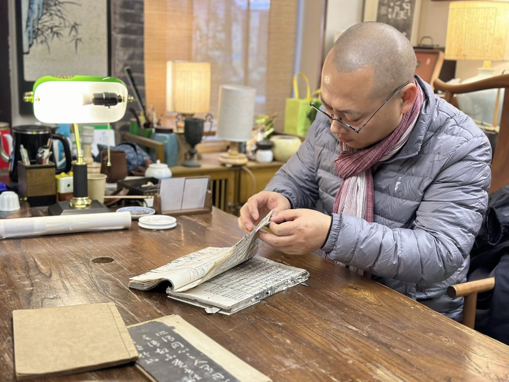 王軍修復古籍(央廣網(wǎng)記者 顧煬威 攝)