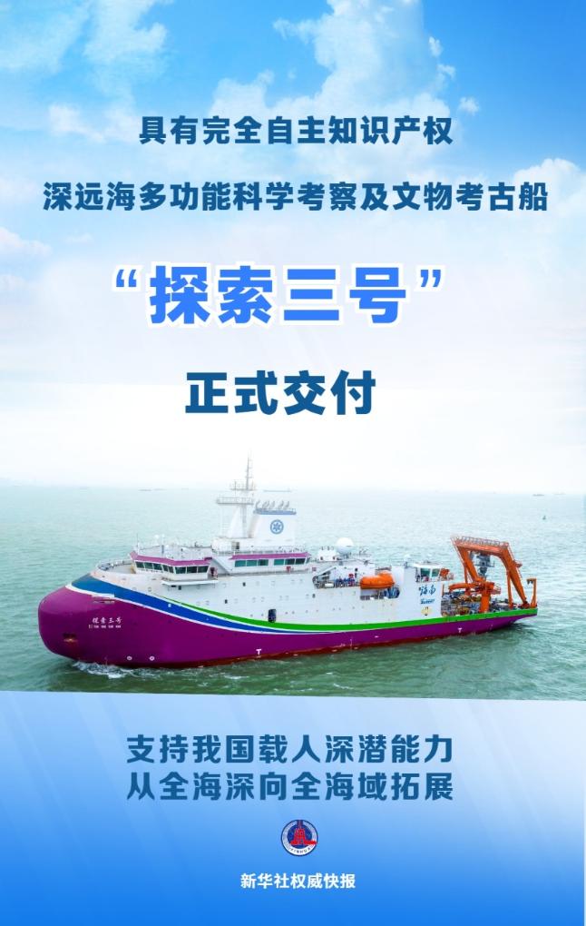 深遠海多功能科學(xué)考察及文物考古船“探索三號”26日在廣州南沙交付。此船具備完全自主知識產(chǎn)權(quán),是我國首艘具備全球(含極區(qū))深遠海探測和冰區(qū)載人深潛支持能力的綜合科考船。