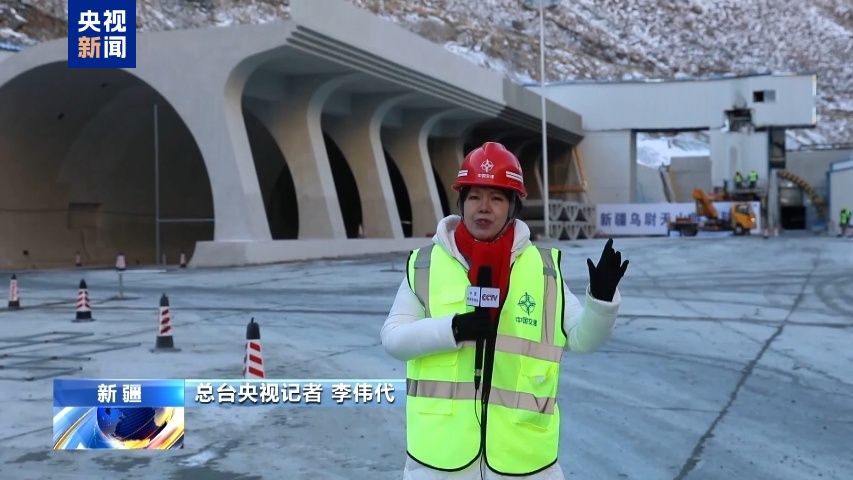 總臺央視記者 李偉代:這里是海拔2800多米的天山勝利隧道施工現(xiàn)場?,F(xiàn)在正是中午,一天中氣溫最高的時候,但氣溫也只有零下22攝氏度。我身后就是天山勝利隧道在天山北麓的進口端,隧道就是從這里穿越天山,一直打過去到南麓。大家可以看到三個洞口依次排列,未來從烏魯木齊方向開車去庫爾勒,從這個洞口20分鐘就可以穿過隧道。如果從庫爾勒北上來烏魯木齊,車輛就從這個隧道口出來。中間的中導(dǎo)洞通車后將用于應(yīng)急救援等服務(wù)。