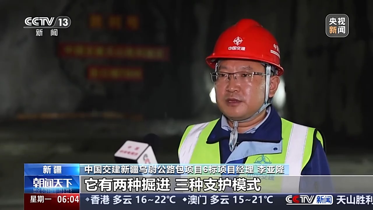 中國交建新疆烏尉公路包項目6標項目經(jīng)理 李亞隆:這是我國自主研制的新型硬巖掘進機,它有兩種掘進、三種支護模式,整合了多項功能,可以根據(jù)軟硬不同的地層隨時調(diào)整掘進和支護模式。掘進中能直接加固好隧道內(nèi)壁,比人工鉆爆快5倍。