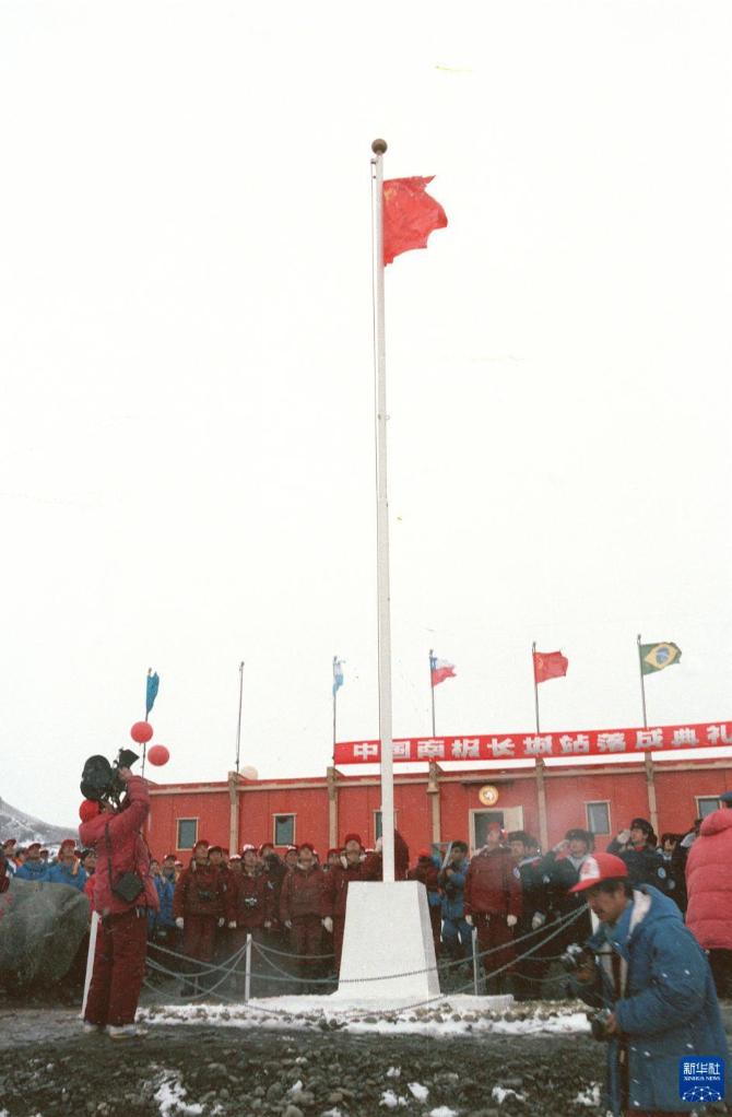 1985年2月20日,中國長城站在喬治王島舉行落成典禮,南極洲上第一次升起了五星紅旗。新華社記者 朱幼棣 攝