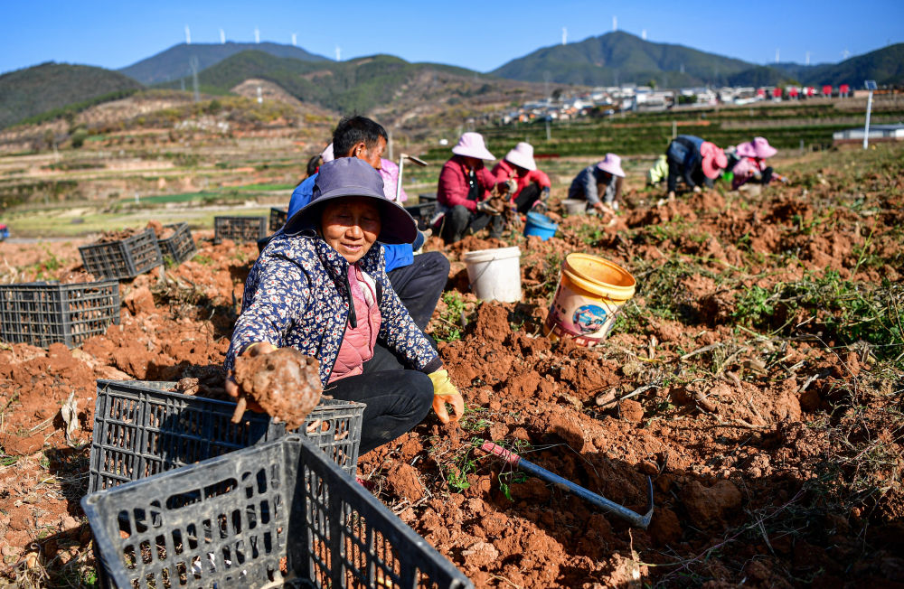 在四川攀枝花市仁和區(qū)板栗現(xiàn)代林業(yè)園區(qū),農(nóng)戶在采收魔芋(2024年12月10日攝)。