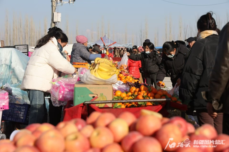 1月11日,烏什縣亞曼蘇柯?tīng)柨俗巫遴l(xiāng)巴扎上的熱鬧場(chǎng)景。外力·克依木 攝