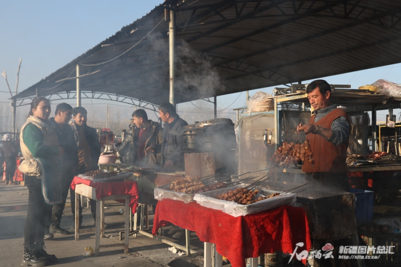 1月11日,烏什縣亞曼蘇柯?tīng)柨俗巫遴l(xiāng)巴扎上煙火氣十足。外力·克依木 攝