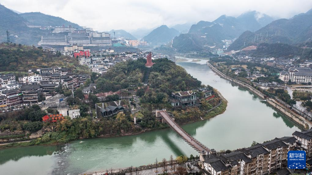 位于貴州遵義仁懷市的四渡赤水之茅臺渡口(2025年1月9日攝,無人機照片)。新華社記者 陶亮 攝