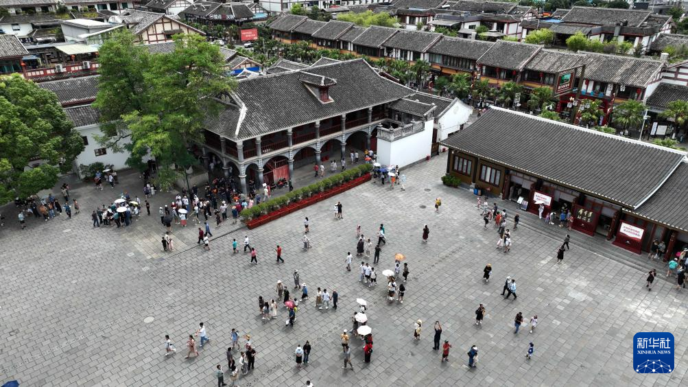 游客在遵義會議會址參觀游覽(2023年8月13日攝,無人機照片)。新華社記者 楊楹 攝