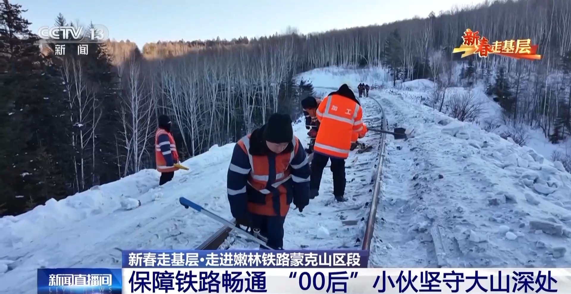 春節(jié)一天天臨近,坐火車前往漠河跨年游玩和回家團(tuán)圓的人越來越多,車廂里的年味越來越濃。一趟趟列車穿過白雪茫茫的蒙克山時,很少有人會想到,窗外有這樣一群在嚴(yán)寒中堅守崗位的00后小伙子們。