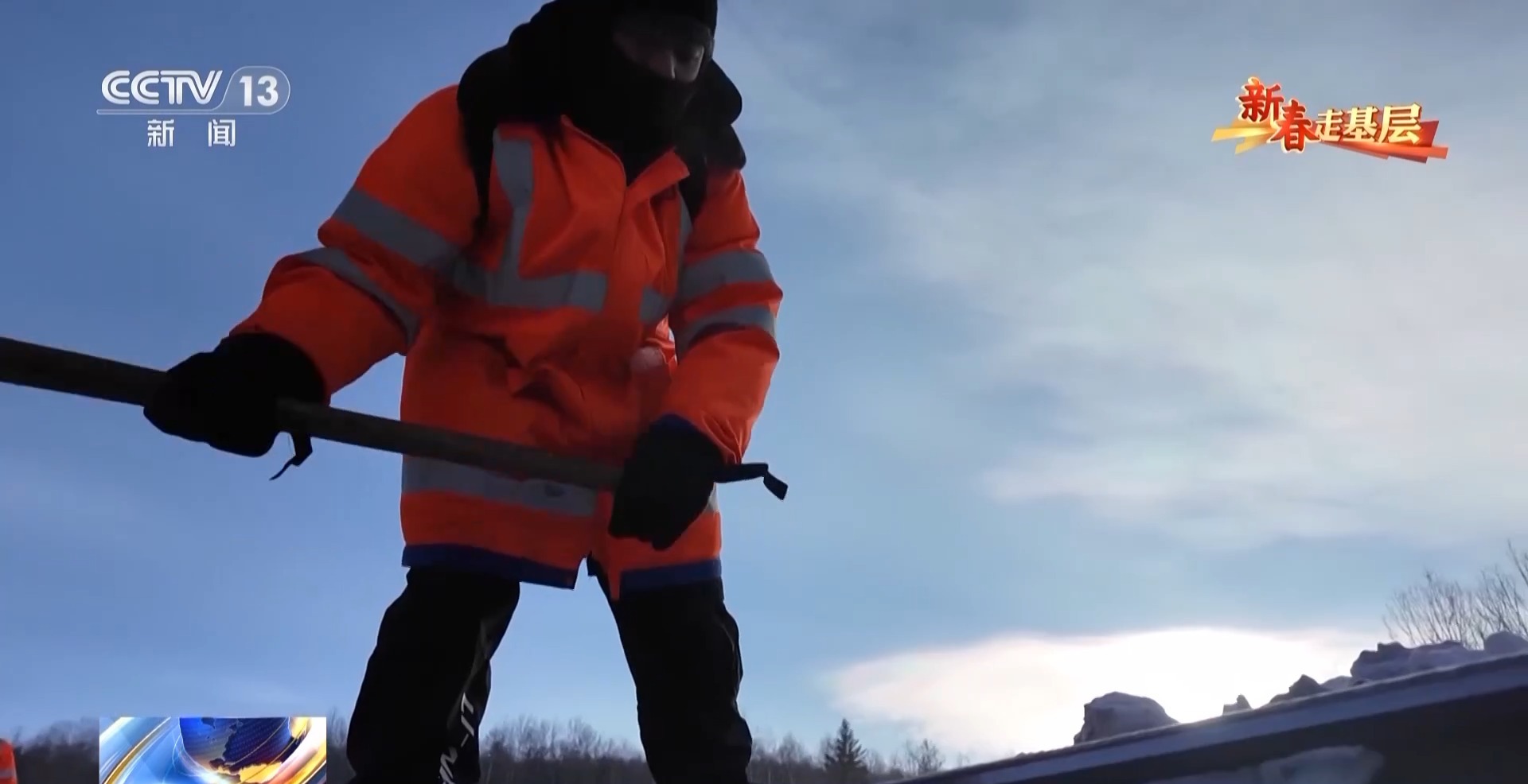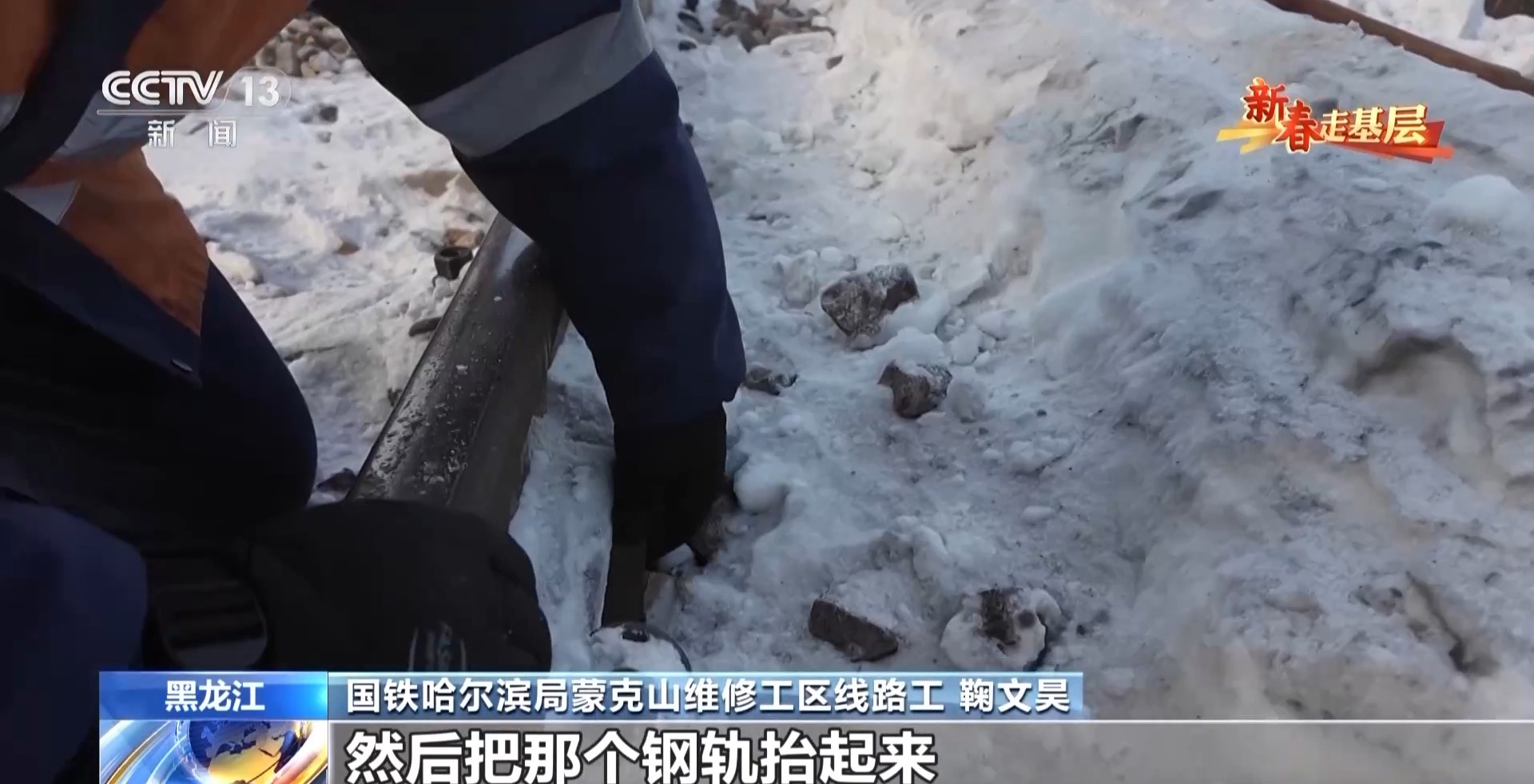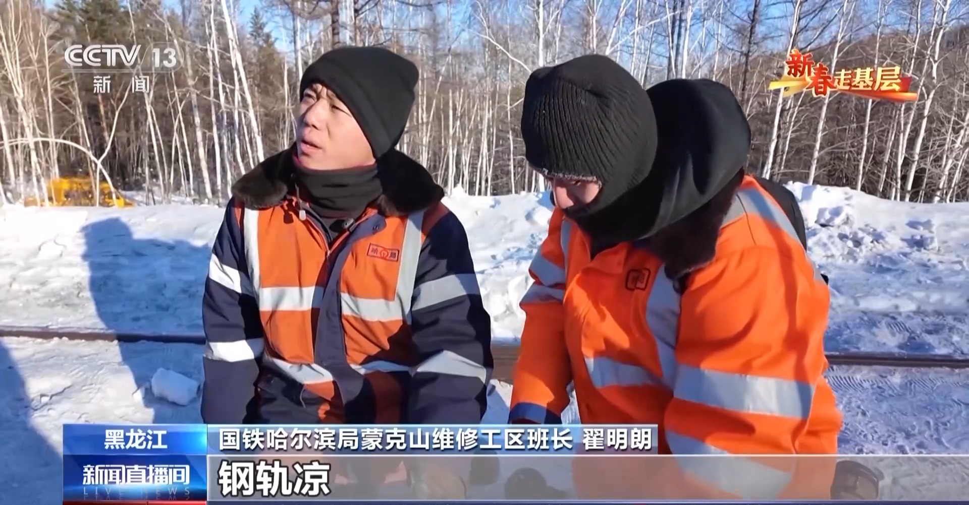 國鐵哈爾濱局蒙克山維修工區(qū)班長 翟明朗:冬天因?yàn)闅鉁乇容^低,鋼軌涼,然后手熱,它碰著鐵直接就粘住了。不能直接往下拽,容易給皮拽下來。