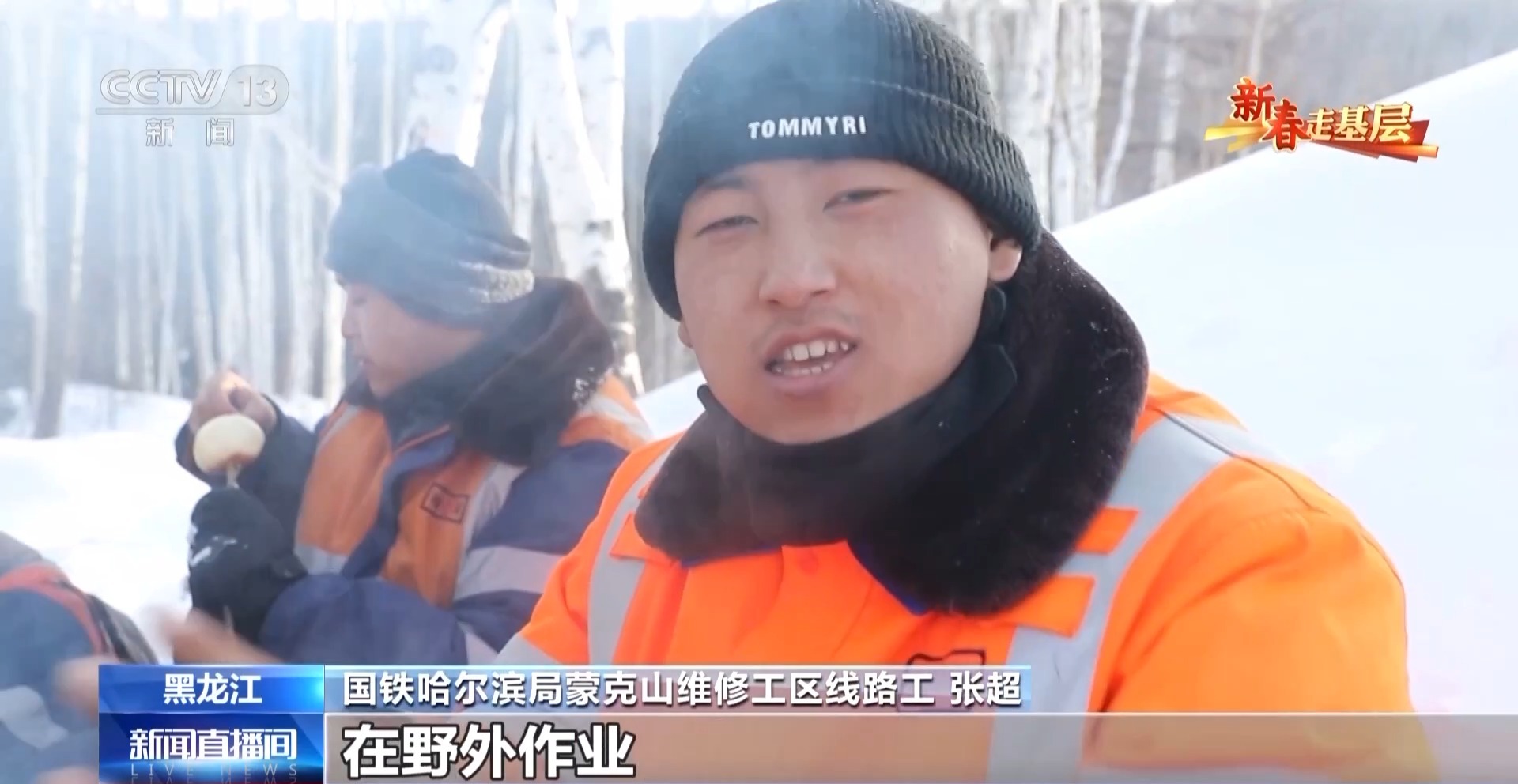 國鐵哈爾濱局蒙克山維修工區(qū)班長 翟明朗:我們到現(xiàn)場最冷就是凍腳,只要一停下來,兩三分鐘腳就凍麻了,要是不烤烤火,這腳一天都緩不過來。