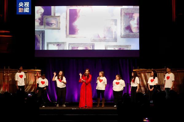 活動上,紐約市兒童合唱團深情演繹歌曲《呼喚之歌》《明天的彩虹》。美國失聰歌手曼迪·哈維攜手多位聽障學(xué)生,共同演唱歌曲《人生杰作》,并用手語向現(xiàn)場嘉賓表達(dá)祝福。
