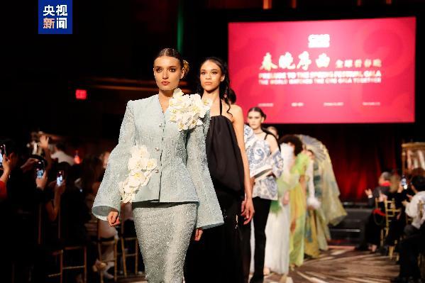 活動現(xiàn)場,“蛇年FUN舞挑戰(zhàn)”互動環(huán)節(jié)吸引了現(xiàn)場嘉賓熱情參與。來自美國華盛頓州的中學(xué)生代表和華僑華人少年兒童合唱團用中文演唱了經(jīng)典曲目《友誼地久天長》。多位新銳國際設(shè)計師從生肖蛇以及風(fēng)靡全球的中國游戲《黑神話:悟空》、舞蹈《只此青綠》中汲取靈感,現(xiàn)場呈現(xiàn)了一場別開生面的新春“國風(fēng)”時尚走秀。