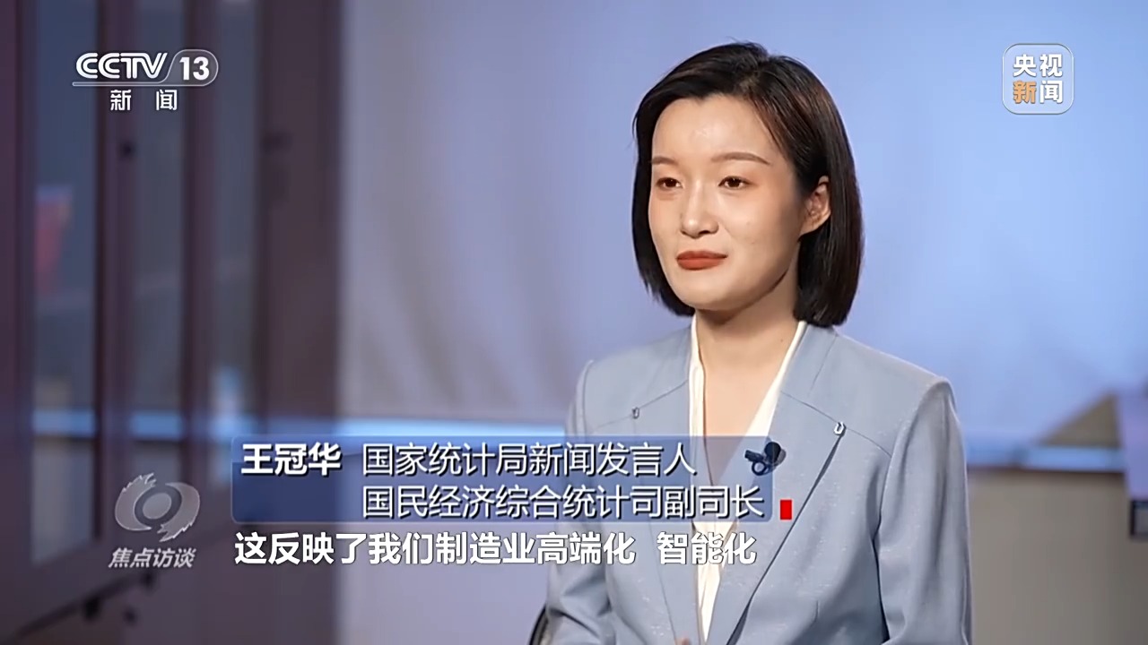 國(guó)家統(tǒng)計(jì)局新聞發(fā)言人、國(guó)民經(jīng)濟(jì)綜合統(tǒng)計(jì)司副司長(zhǎng) 王冠華:2024年各地在因地制宜發(fā)展新質(zhì)生產(chǎn)力,集成電路、人工智能、量子技術(shù)等這些領(lǐng)域都實(shí)現(xiàn)了新的突破。裝備制造業(yè)占規(guī)模以上工業(yè)的比重超過(guò)了34%,高技術(shù)制造業(yè)在規(guī)模以上工業(yè)中的比重超過(guò)了16%,兩個(gè)比重都是在穩(wěn)步提升,反映制造業(yè)高端化、智能化、綠色化發(fā)展的態(tài)勢(shì)在持續(xù)推進(jìn)。還有一個(gè)數(shù)據(jù),2024年的每一天,我國(guó)有超過(guò)8萬(wàn)輛汽車(chē),340萬(wàn)臺(tái)智能手機(jī)下線(xiàn),4.7億個(gè)快遞包裹寄送,中國(guó)市場(chǎng)的活力、魅力和潛力有目共睹。