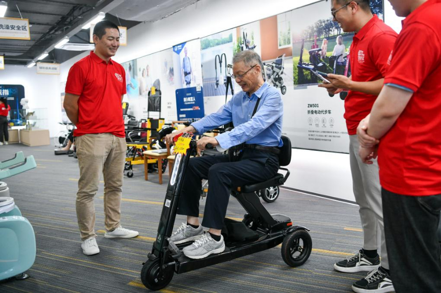 2024年10月12日,一名老人在體驗(yàn)折疊電動(dòng)代步車。位于深圳的老年用品商場(chǎng)“深業(yè)·健康匯”向市民開放,展示居家安全、娛樂生活、智能照護(hù)等50余個(gè)品類、數(shù)百種智能居家適老產(chǎn)品,吸引眾多市民前來了解、選購(gòu)。新華社記者梁旭 攝