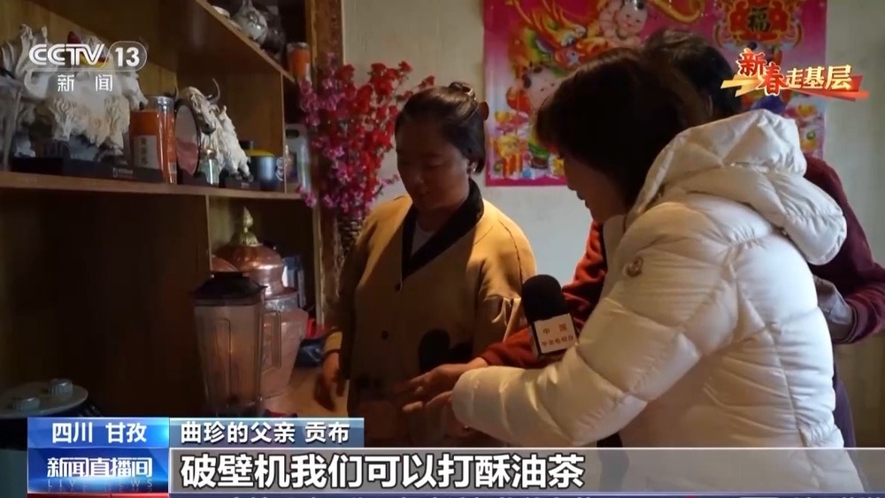 曲珍的父親貢布告訴記者,過去牧區(qū)用電一直是個大問題,小水電不穩(wěn)定,還得點煤油燈。2014年,查卡村并入國家大電網(wǎng),家里的各種電器也多了起來。