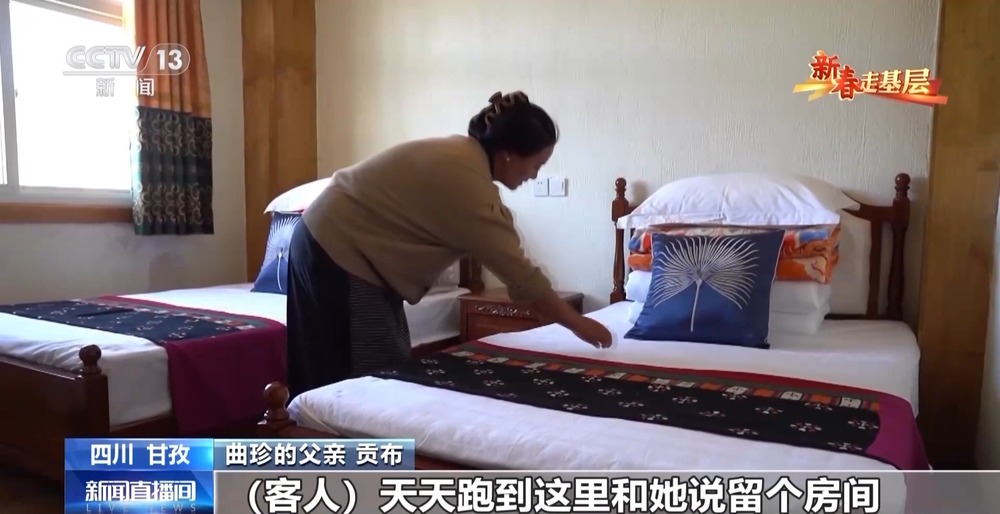 曲珍的父親 貢布:客人天天跑到這里和她說留個房間,大概七月份到八月份都有客人。