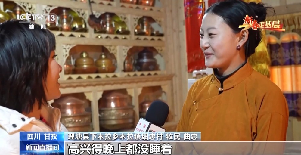 總臺央視記者 唐蕾:這里是海拔4100米的318國道理塘線,在我身后來往不少車輛,順著這條公路,可以到達理塘縣22個鄉(xiāng)鎮(zhèn),通過這幾天走基層的采訪,我們也感受到道路的打通,不僅建立起川西高原和外界的聯(lián)通,而且,隨著今年以舊換新政策的落地,越來越多的精品好物也更快地進入到牧民家中,滿足了老百姓對美好生活的向往。