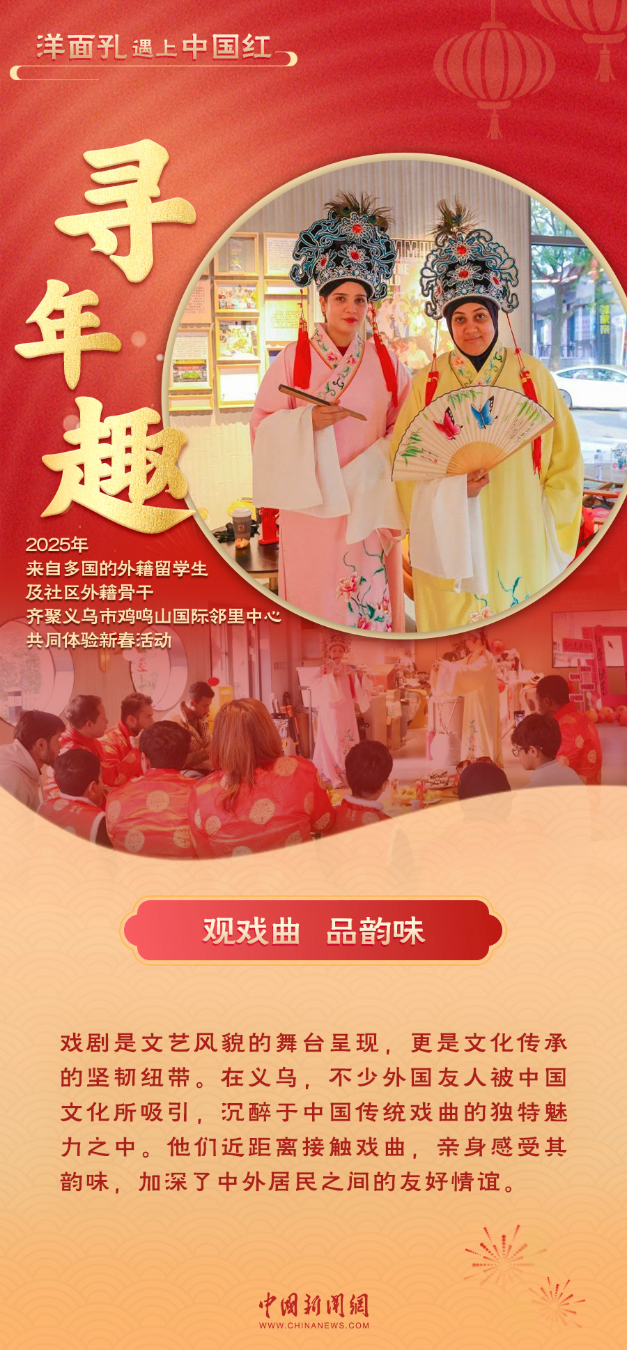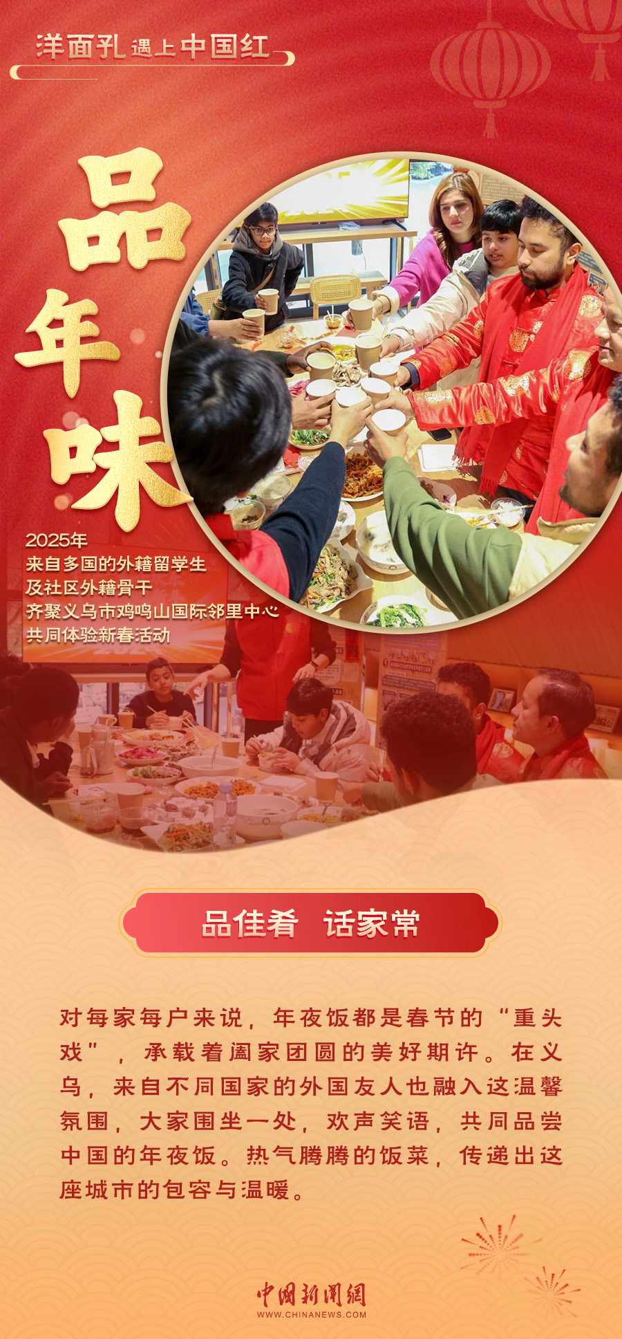 當(dāng)“洋面孔”遇上“中國紅”,一場跨越文化的交融在義烏上演。紅火的對(duì)聯(lián)、熱鬧的戲劇表演、香甜的年夜飯……外國友人們沉浸在中國年的喜慶氛圍中,感受著這份獨(dú)特的溫暖與歡樂。義烏的年味,不僅溫暖了“世界老鄉(xiāng)”的心,也讓全球各個(gè)地方看到了中國年的魅力與溫度。