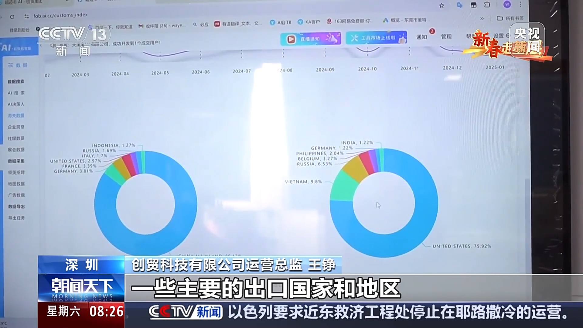 創(chuàng)貿(mào)科技有限公司運(yùn)營(yíng)總監(jiān) 王錚:我們統(tǒng)計(jì)了一下,目前全球關(guān)于這一款產(chǎn)品的一些主要的出口國(guó)家和地區(qū),以及進(jìn)口國(guó)家和地區(qū)也是展示出來了。