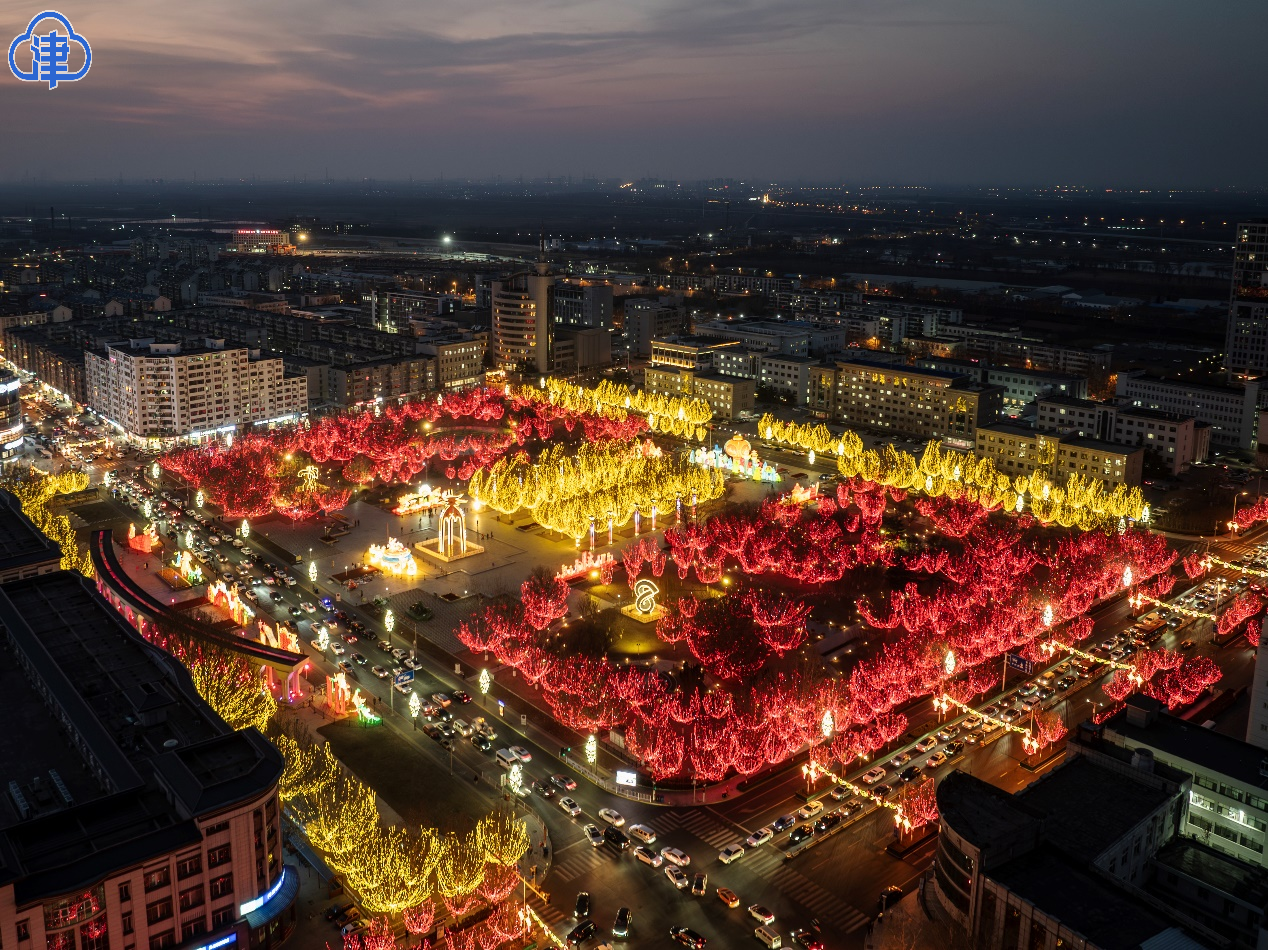 華燈初上,彩燈輝映,楊柳青古鎮(zhèn)年味濃。這“年味”里有千年運河、漕運文化的積淀,有楊柳青木版年畫故事的婉轉訴說,有兒時記憶里的茶湯、面人、酥糖,有轉角處花叢、廊檐下福字透露出的喜慶洋洋。