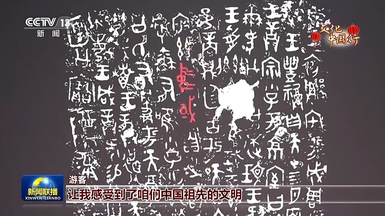 游客:這是我拍到了最早的中國兩個字。一進(jìn)來就非常震撼,讓我感受到了咱們中國祖先的文明,作為一個中國人,讓我感到非常驕傲和自豪。