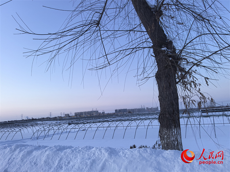 天山腳下,青格達湖邊,下了一天一夜的大雪剛停,劉建軍就去了隔壁新聯(lián)村的清潔能源智能溫室育苗大棚,看看前幾天育的茄子發(fā)芽了沒。