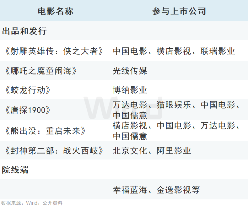 據(jù)公開資料整理,多家上市公司參與春節(jié)檔電影出品、發(fā)行等: