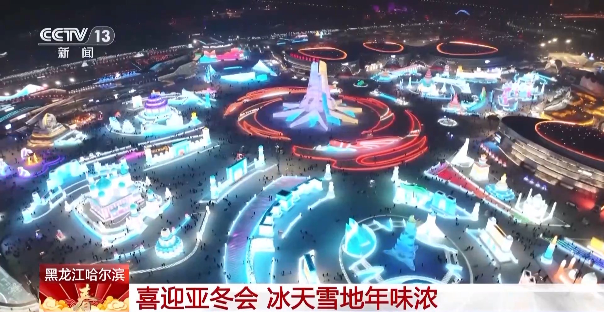 總臺記者 任秋宇:不僅亞冬會氛圍濃厚,園區(qū)當(dāng)中也是年味十足,您看春節(jié)期間,哈爾濱冰雪大世界又上新了一些春節(jié)的冰雕。