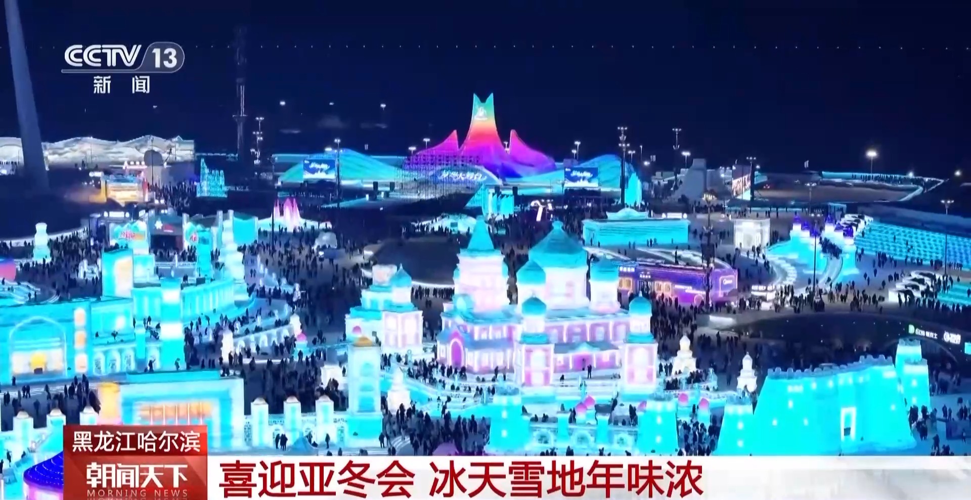 春節(jié)期間,很多人選擇來到哈爾濱冰雪大世界,在冰天雪地里感受濃濃的年味。恰逢第九屆亞冬會即將召開,園區(qū)中景觀設(shè)計充滿亞冬會元素。當(dāng)春節(jié)與亞冬會相遇,在哈爾濱冰雪大世界里是什么景象呢?讓我們一起去感受夜晚冰雪大世界里的亞冬會氛圍和濃濃年味↓