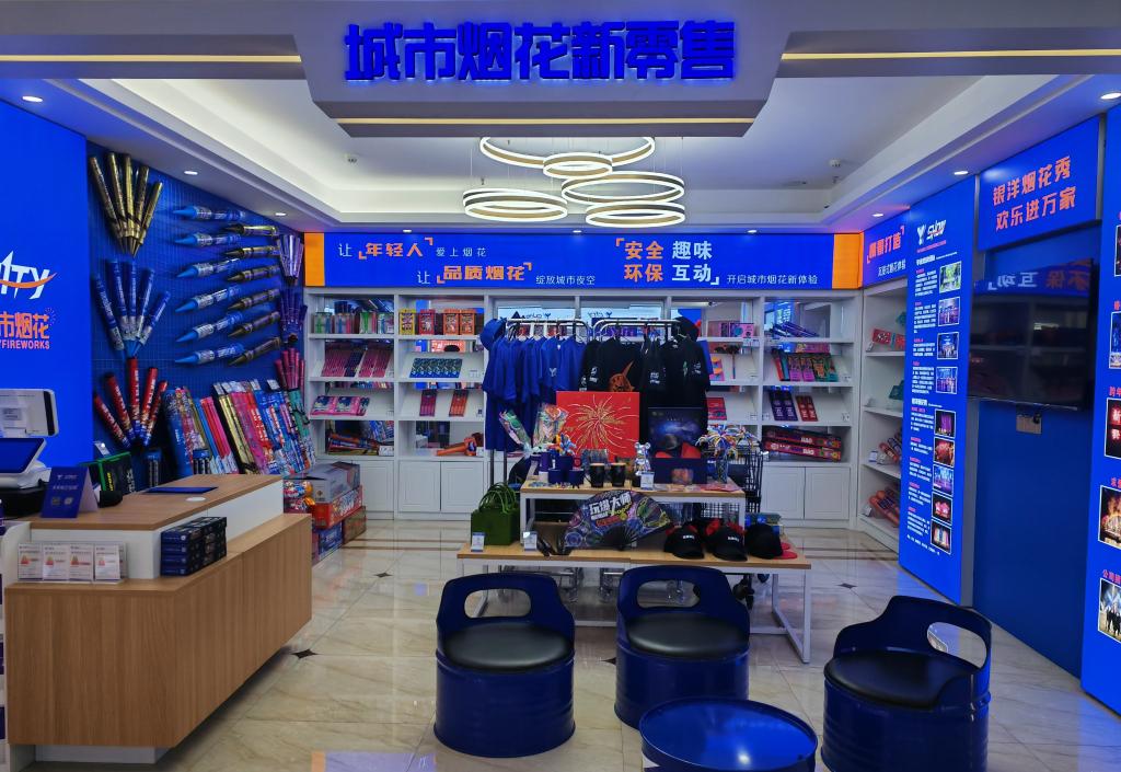 大瑤鎮(zhèn)一家花炮企業(yè)展示的城市煙花“新零售”門店。新華社記者 白田田 攝