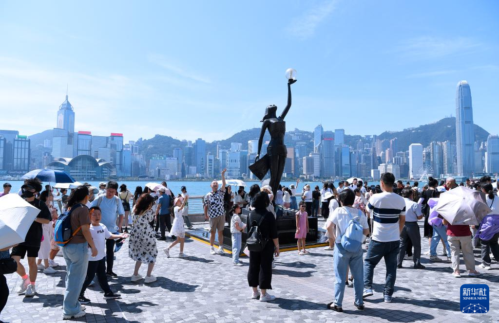 游客在香港星光大道游覽(2024年10月3日攝)。新華社記者 陳鐸 攝