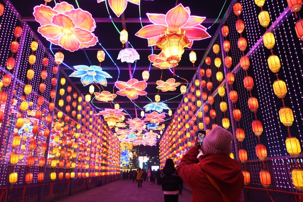 圖為游客在四川省自貢市中華彩燈大世界拍攝彩燈。新華社記者 唐文豪 攝