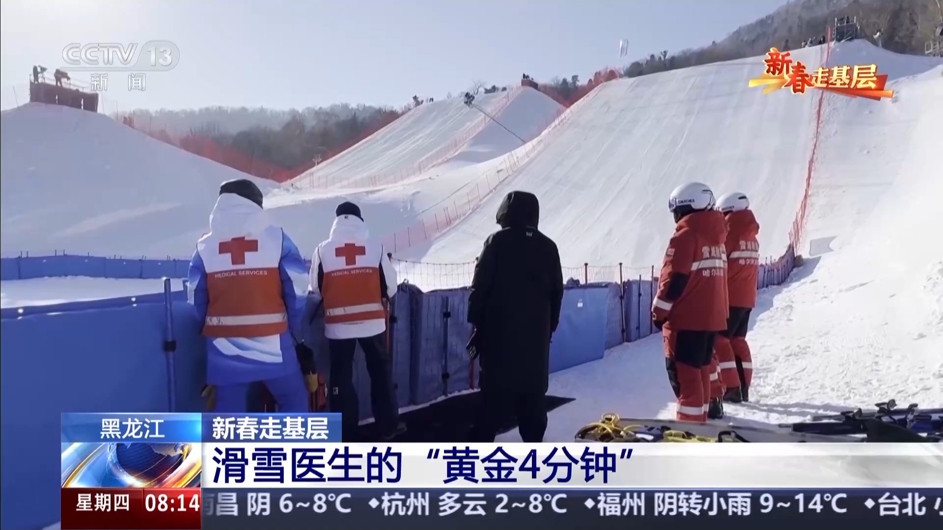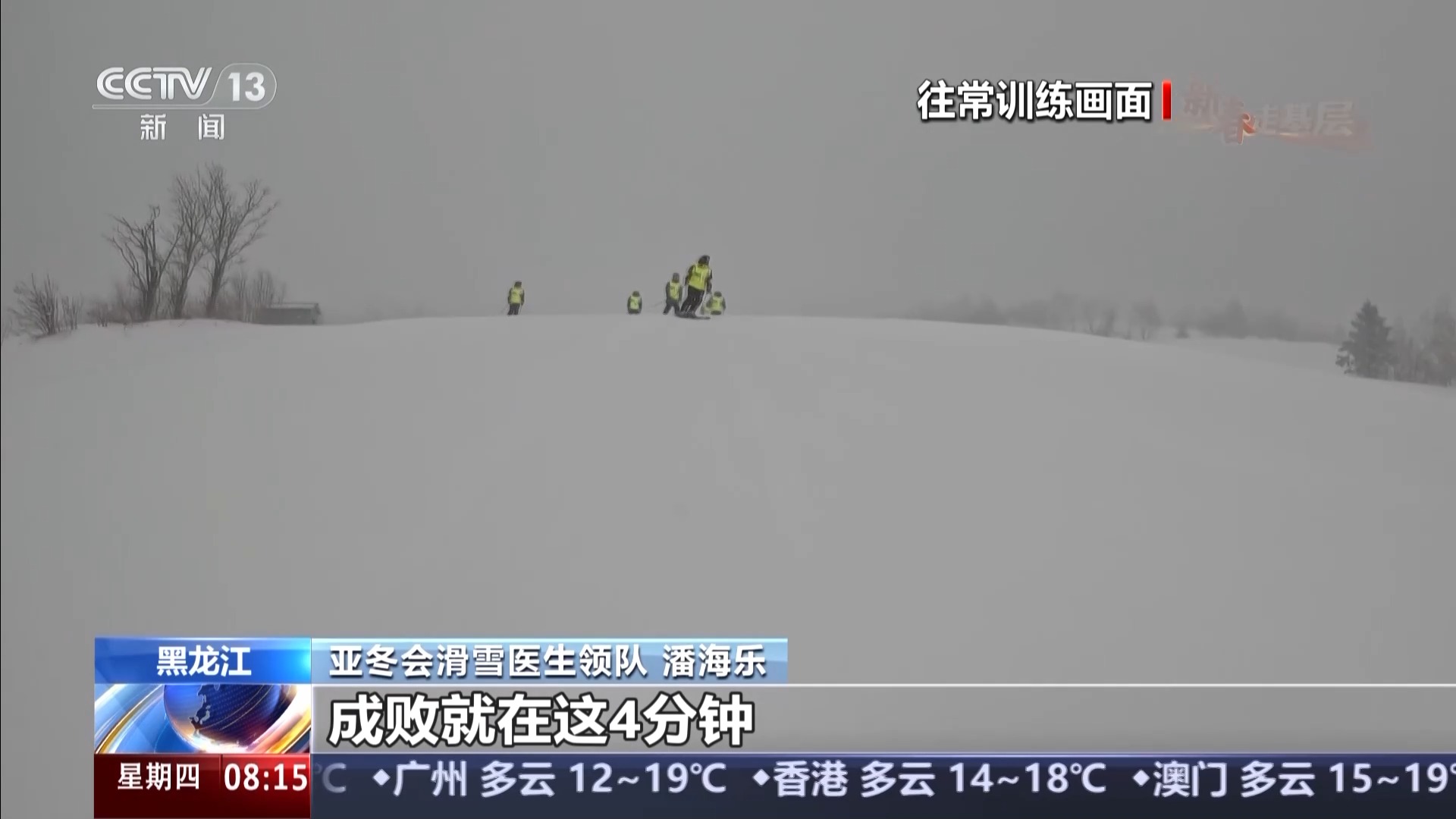 亞冬會(huì)滑雪醫(yī)生領(lǐng)隊(duì) 潘海樂(lè):經(jīng)過(guò)一年的非??炭嗟挠?xùn)練,我覺(jué)得現(xiàn)在應(yīng)該都具備了真正賽場(chǎng)保障的能力,但是還需要真正的賽場(chǎng)大考來(lái)把成色再驗(yàn)一驗(yàn),就是我們?cè)趺茨軌螯S金4分鐘處理好,成敗就在這4分鐘。