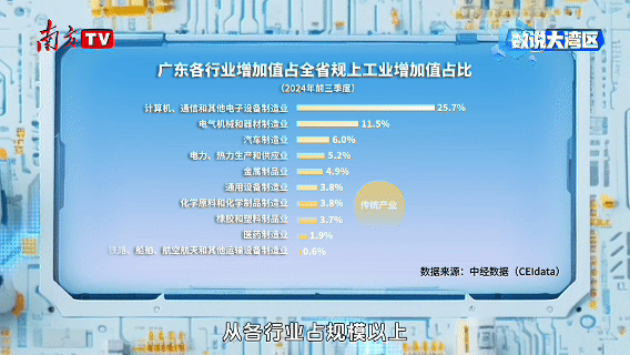 從各行業(yè)占規(guī)模以上工業(yè)增加值的比重來看,廣東的工業(yè)產(chǎn)業(yè)體系有三股強大支柱:傳統(tǒng)產(chǎn)業(yè)、新興產(chǎn)業(yè)、未來產(chǎn)業(yè)。