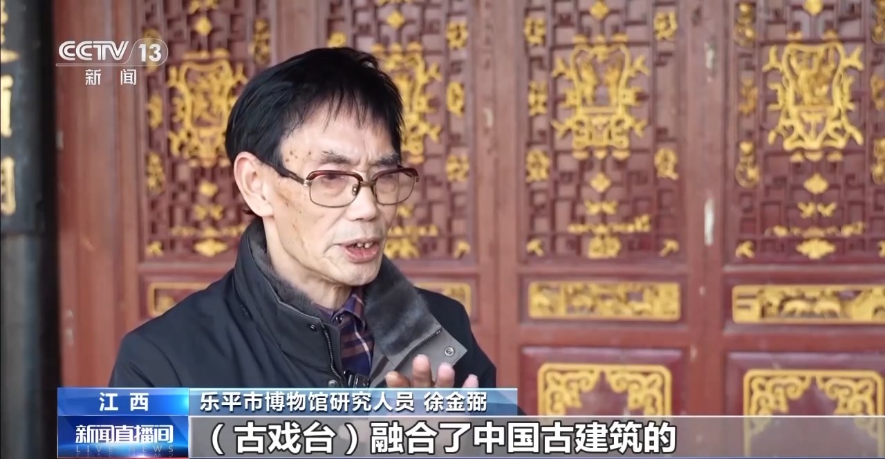 樂平市博物館研究人員 徐金弼:古戲臺融合了中國古建筑的基本重要的元素,雕工精湛,把徽派雕刻藝術全部集在一起。