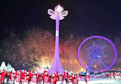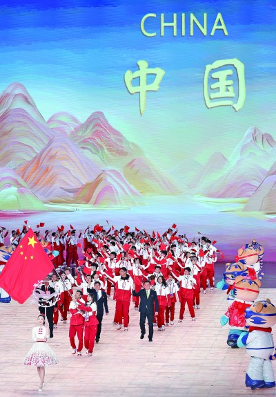 當(dāng)中國代表團(tuán)入場時(shí),體育健兒揮手致意,現(xiàn)場觀眾起立鼓掌。在本屆亞冬會(huì)上,中國代表團(tuán)將參加全部項(xiàng)目的比賽,并朝著“取得我國亞冬會(huì)參賽史上最好成績”的目標(biāo)全力進(jìn)發(fā)。