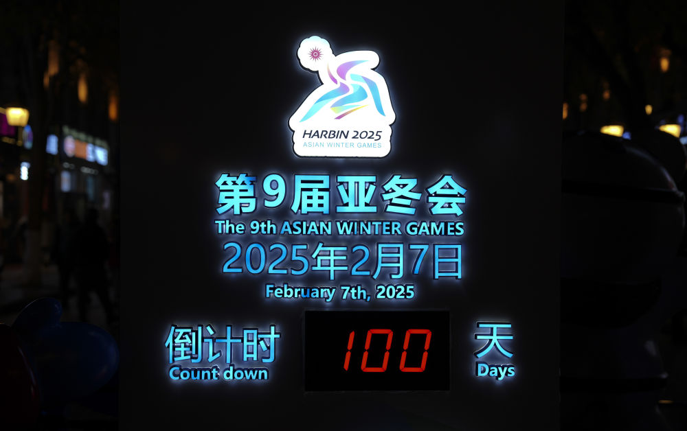 這是2024年10月30日在哈爾濱中央大街上拍攝的亞冬會(huì)倒計(jì)時(shí)牌。當(dāng)日是2025年第九屆亞洲冬季運(yùn)動(dòng)會(huì)倒計(jì)時(shí)100天。
