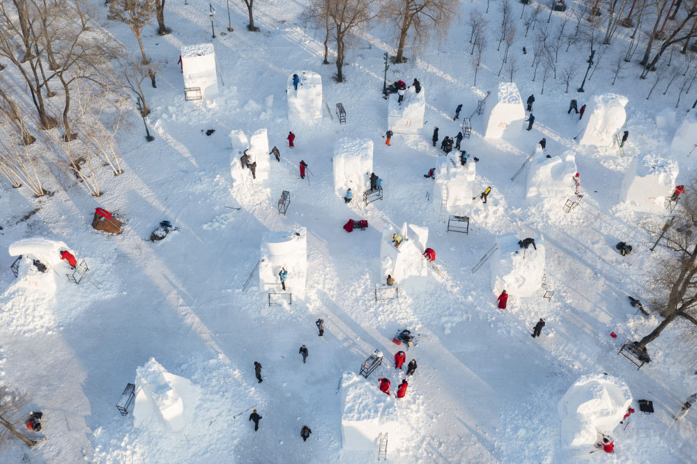 2025年1月6日,第27屆哈爾濱國(guó)際雪雕比賽參賽選手在雕刻雪雕作品。來自10個(gè)國(guó)家20余支代表隊(duì)的雪雕藝術(shù)家在哈爾濱太陽島雪博會(huì)園區(qū)同場(chǎng)競(jìng)技。