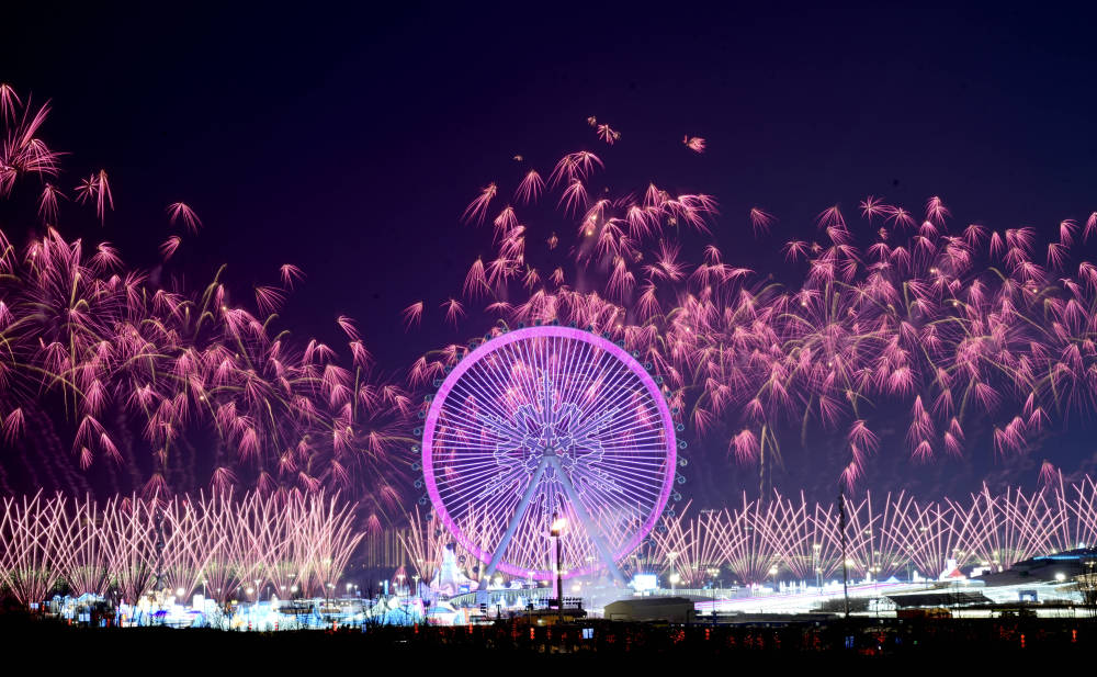 2025年2月7日,焰火在開幕式分會(huì)場(chǎng)上空綻放。