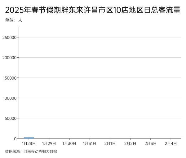 河南移動梧桐大數(shù)據(jù)顯示,2月2日至4日,胖東來許昌市區(qū)10店地區(qū)日均總客流量為假期前五天的3倍多。