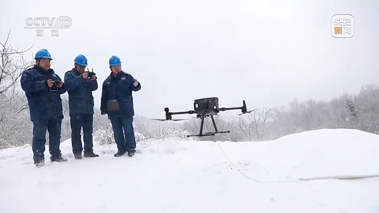 對于融冰站設備覆蓋范圍之外的線路,這些電力工人又嘗試利用無人機懸掛絕緣棒,撞擊覆冰。然而線路結(jié)冰并不只局限在導線上面,導線上、鐵塔上、絕緣子上都會結(jié)冰。