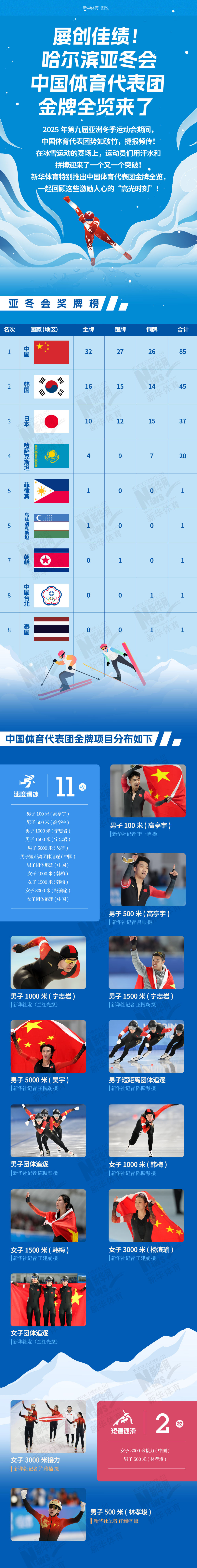 長圖|屢創(chuàng)佳績!哈爾濱亞冬會中國體育代表團金牌全覽來了!