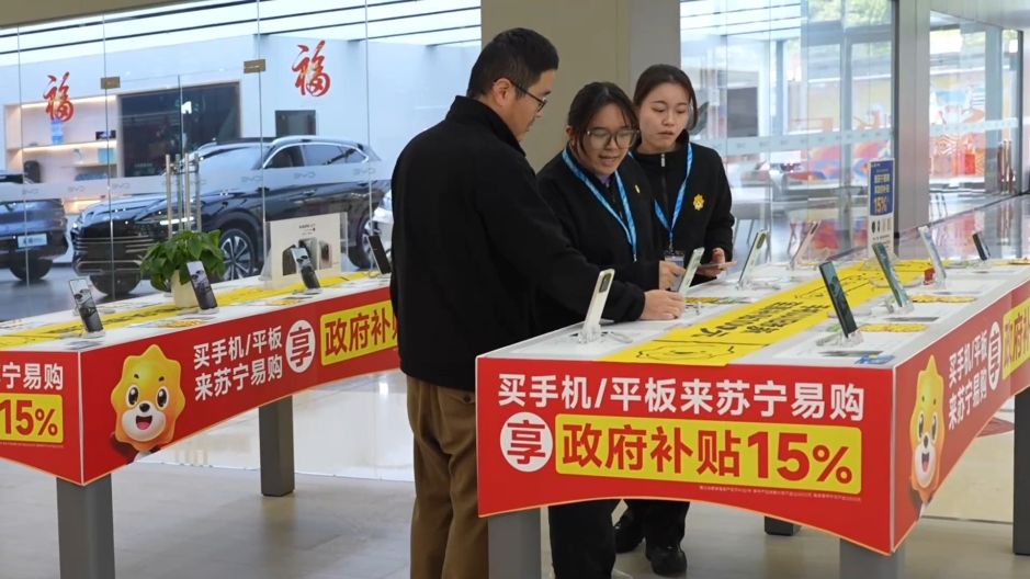 “以舊換新咨詢的比較多的是手機這一塊。因為手機、平板和智能手環(huán)這一塊是新增的補貼?!碧K寧易購廣西三祺廣場店店長 廖永寧表示。
