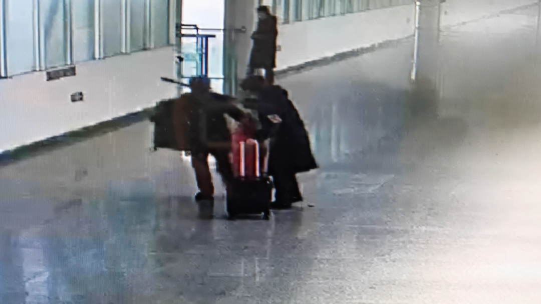 她被多名工作人員和乘客接力“護送”
