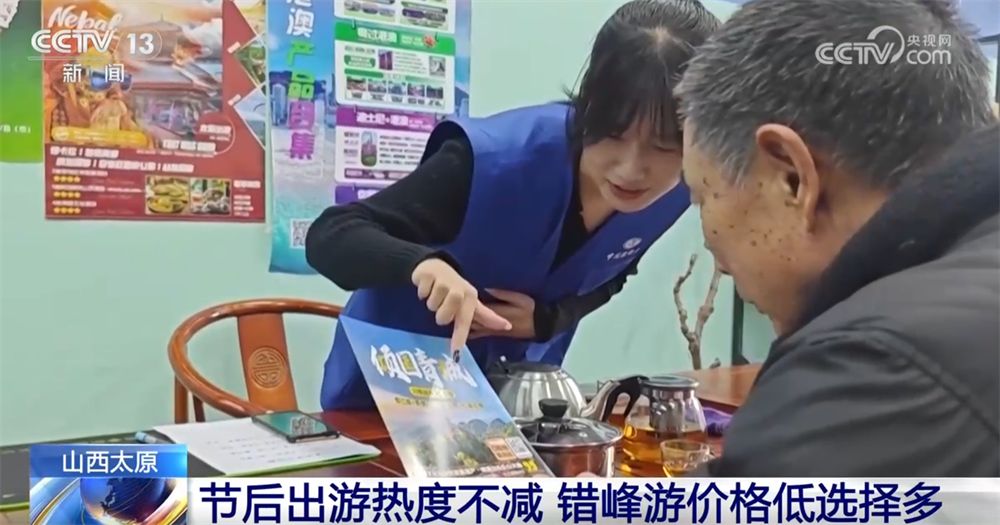記者在山西太原市區(qū)的一家旅行社看到,宣傳海報(bào)擺放在顯眼位置,不少消費(fèi)者前來(lái)咨詢近期的出游線路。