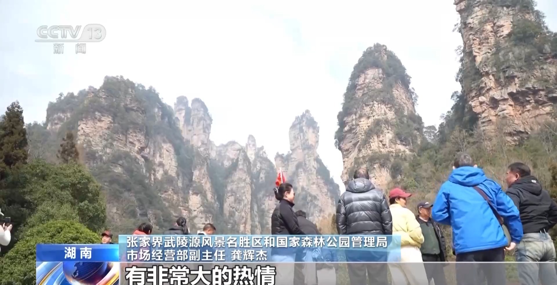 張家界武陵源風(fēng)景名勝區(qū)和國(guó)家森林公園管理局市場(chǎng)經(jīng)營(yíng)部副主任 龔輝杰:很多游客對(duì)探尋打卡電影取景地有非常大的熱情,這種熱情能在短期內(nèi)轉(zhuǎn)化成很大流量的。我們嘗試用科技賦能文旅,借助電影的熱度,打造景點(diǎn)標(biāo)簽,給游客一個(gè)既熟悉又新鮮的游玩體驗(yàn)。