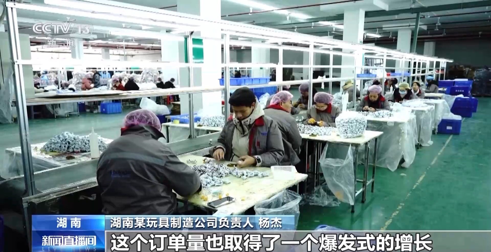 湖南某玩具制造公司負(fù)責(zé)人 楊杰:《哪吒2》爆火之后,我們企業(yè)的訂單量也取得了爆發(fā)式的增長(zhǎng),也為我們后面的發(fā)展提供了很多方向?,F(xiàn)在國(guó)內(nèi)的訂單,我們4月份都將近排滿了。然后我們現(xiàn)在又接到國(guó)外,像北美、俄羅斯、東南亞激增的訂單量需求。