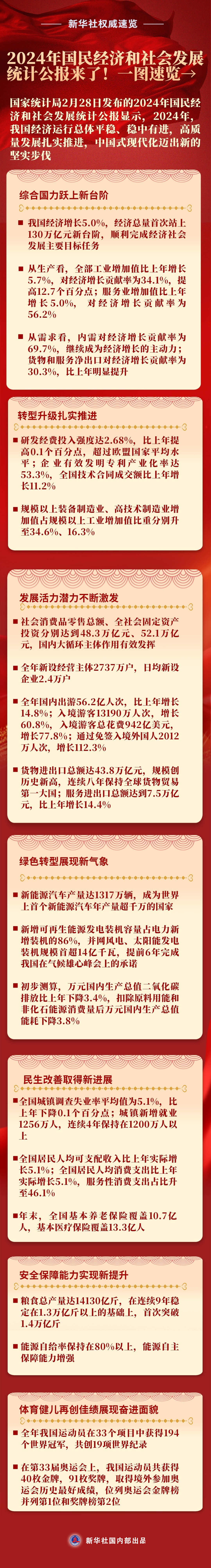 新華社權(quán)威速覽丨2024年國民經(jīng)濟(jì)和社會發(fā)展統(tǒng)計(jì)公報來了!一圖速覽→