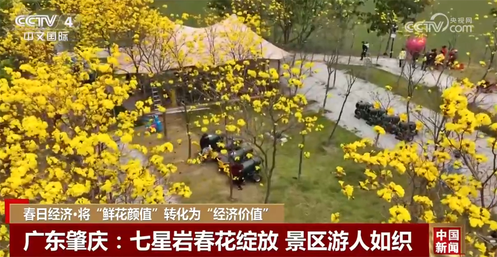 在廣東肇慶七星巖景區(qū),宮粉紫荊、黃花風(fēng)鈴木、櫻花、禾雀花等競(jìng)相綻放。在禾仙島上的黃花風(fēng)鈴木林正值盛放期,金燦燦的花冠與星湖碧波相映成趣。景區(qū)推出門票優(yōu)惠等舉措,吸引游客來賞花。