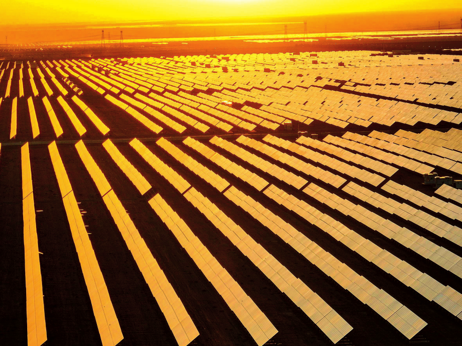 夕陽映照下的新疆哈密市石城子光伏產(chǎn)業(yè)園一角(2024年9月8日攝)。胡虎虎攝/本刊